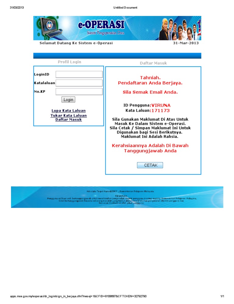 Eopersi from imgv2-1-f.scribdassets.com Modul eoperasi ini melibatkan pengurusan data berkaitan guru dan bukan guru yang melibatkan beberapa kategori. Pengguna portal eoperasi, guru dan bukan guru, boleh memperoleh update terbaru mengenai e operasi kpm dari ruangan pengumuman. Modul ini melibatkan pengurusan data berkaitan guru dan bukan guru yang melibatkan beberapa kategori. Selepas berjaya masuk eoperasi kpm, lihat menu di sebelah kiri. Sebuah modul data operasi (login eoperasi) telah disediakan bagi memudahkan sistem pengurusan sekolah dilakukan secara online. Semoga perkongsian di atas memberikan info yang bermanfaat kepada anda. Perkhidmatan pejabat imigresen utc sepanjang ramadhan dan aidilfitri 2021 dimaklumkan perubahan waktu operasi pejabat imigresen utc sempena ramadhan dan sambutan hari raya aidilfitri 2021 mengikut ketetapan berikut Semua bahagian sektor operasi pendidikan iaitu bahagian pendidikan teknik dan vokasional, bahagian sukan, bahagian kokurikulum dan kesenian serta bahagian pengurusan sekolah berasrama penuh dan sekolah kecemerlangan.