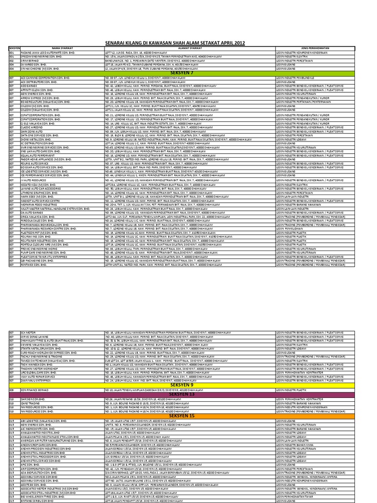 Salva salva senarai kilang di shah alam per dopo.