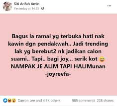 Perceraian dengan bekas suami sah, joy revfa takkan kembali kepada hafiz hamidun. Setelah menghadapi pelbagai konflik rumah tangga, joy revfa atau nama sebenarnya siti arifah amin, 30 tetap ingin membuktikan bahawa status pernikahannya bersama bekas suaminya adalah sah. 1 jun 2017 joy ke majlis agama islam songkhla thailand untuk membuat aduan taklik dgn bekas suami. Pendakwah bebas da'i syed shah iqmal menjelaskan tiada hubungan cinta wujud antara dia dan bekas isteri penyanyi nasyid hafiz hamidun, joy revfa. Hakim syarie, salehan yatim memutuskan pernikahan joy atau nama sebenarnya siti arifah amin, 30, dan datuk mohd rayus abdul rahim di majlis agama.
