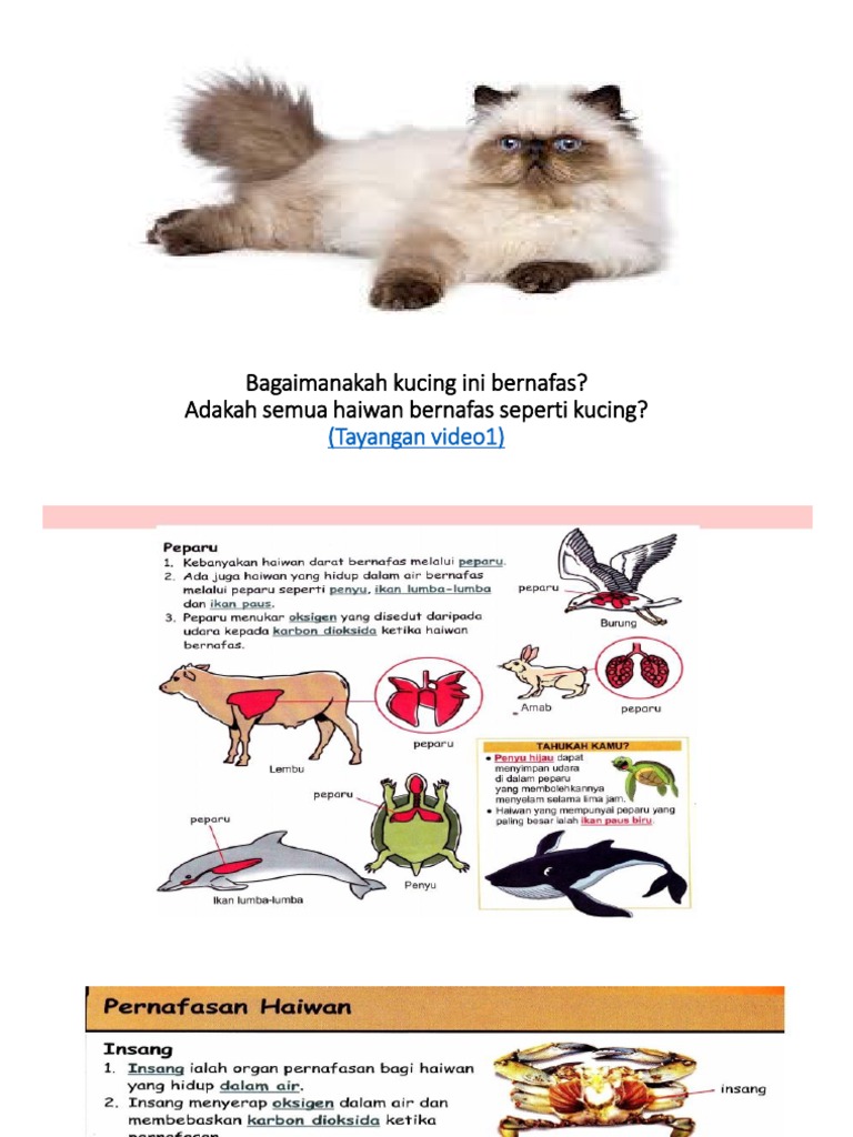 Insang digunakan oleh kebanyakkan haiwan yang hidup di dalam air. Haiwan perlu bernafas untuk hidup. Haiwan berlainan akan mengumuhkan hasil perkumuhan dalam cara berlainan. Setiap murid diberikan sehelai kertas a4. .ya ikan bernafas melalui insang, yang mana jumlah insang pada ikan ada 4 terletak pada bagian sebelah kanan dan kiri, insang apad ikan dilindungi oleh tutup insang.
